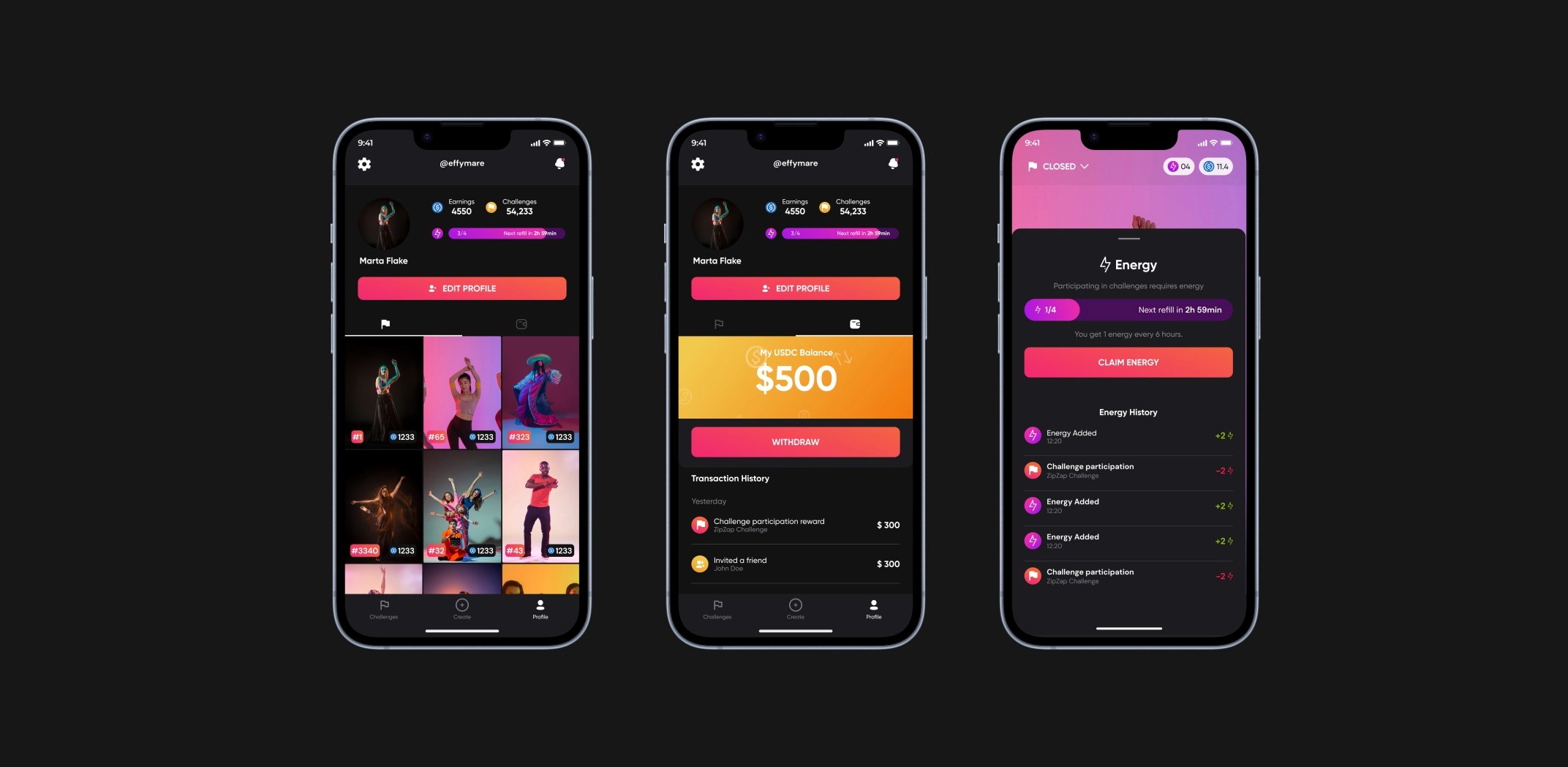 As the UX Designer, I owned the end-to-end user experience from first login to reward redemption. I researched engagement patterns in the target demographic, designed the onboarding process, home screen, challenge and rewards interfaces, and cryptocurrency wallet system including withdrawal functionality. This comprehensive design work bridged social engagement with Web3 rewards, making cryptocurrency concepts accessible to mainstream users.